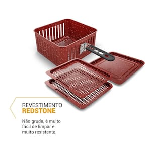 O painel digital com 10 funções pré-programadas garante preparo descomplicado com apenas um toque. Além disso, o revestimento Redstone é resistente, antiaderente e fácil de limpar, tornando sua experiência na cozinha muito mais prática.