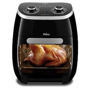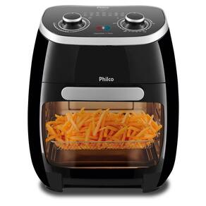 Fritadeira Philco 2 em 1 Air Fry e Forno Oven 11L PFR2000PSuas receitas sem complicação e em dose duplaA Fritadeira Air Fry Oven PFR2000P da Philco tem dois bons motivos para você renovar a sua cozinha e ganhar muito mais agilidade ao preparar seus pratos favoritos. Diferente dos modelos convencionais, essa é uma fritadeira 2 em 1, capaz não só de fritar os mais variados tipos de alimentos sem o uso de óleo, como também assá-los, graças ao seu forno elétrico embutido.Seus 1700W de potência dão conta do recado em qualquer situação. A função Air Fry faz com que o ar quente envolva os alimentos por completo, garantindo um cozimento perfeito e uma casquinha crocante por fora. Já o forno, é indispensável na cozinha e abre infinitas possibilidades para preparar bolos, massas e outras delícias.Com capacidade para preparar até 11 litros de alimento de uma só vez, a Fritadeira Air Fry Oven é ideal tanto para quem vive sozinho quanto para grandes famílias. Para facilitar o preparo, ela apresenta temperatura ajustável de 80°C a 200°C, simples de adaptar para cada alimento. Seu cesto antiaderente não deixa o alimento grudar e você ainda pode removê-lo sem complicação, facilitando a limpeza após o uso.Veja mais detalhes da Fritadeira Air Fry Oven PFR2000P Philco e garanta já a sua!Características- Frita com pouquíssimo ou nenhum óleo;- Seletor de temperatura com ajuste de 80 a 200°C; - Timer de 60 minutos; - Capacidade 11L; - Luz vermelha indicadora de funcionamento; - Luz azul indicadora de aquecimento; - Base antiderrapante; - Proteção contra superaquecimento; - Luz interna; - Botão touch para acionamento da luz interna; Especificações técnicas- Marca: Philco- Modelo: PFR2000P- Cor: Preto- Composição: Metal e Plástico- Potência (W): 1700w- Temperatura máxima (°C):200 ºC- Consumo de energia (kW/h): 1,7 kW/h - 110V/ 2 kW/h - 220V- Capacidade (litros): 11 L- Porta-fio: sim- Desligamento automático: sim- Antiaquecimento externo: sim- Cesto removível: Sim- Mantém aquecido: Sim- Tipo: Sem óleo- Voltagem 110v ou 220v (Não é bivolt)Conteúdo da Embalagem- 1 Fritadeira Elétrica - 2 assadeiras c/ 20cm de profundidade- 1 assadeira c/ 30cm de profundidade; - 1 coletor de resíduos; - Manual de instruções, certificado de garantia e mini foldersDimensões e Peso- Produto (A x L x P) 38 x 32,4 x 35cm- Peso 6,14Kg- Dimensões internas: (A x L x P) 18 x 25,5 x 24,5cmGarantia de 12 meses pelo fabricante.