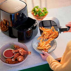 Com uma Air Fryer você pode ir muito além da batata frita, são diversas possibilidades como: Fritar; Assar; Grelhar; Tostar e Reaquecer seus alimentos, claro, sempre da maneira mais saudável possível com até 90 menos gordura e com a tecnologia Rapid Air você terá alimentos crocantes por fora e macios por dentro.