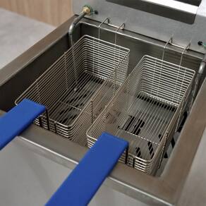 Os 2 cestos aramados (24x11x11 cm) suportam até 1 kg de alimento cada e são projetados para evitar que alimentos passem pelos vãos. Com cabos termorresistentes e resistência blindada, a fritadeira oferece segurança e durabilidade em operações intensivas. A estrutura 100% inox e o cabeçote removível facilitam a limpeza, enquanto a válvula traseira permite escoar o óleo utilizado sem esforço. Certificada pelo Inmetro, esta fritadeira é capaz de produzir até 400 kg de fritura por hora o equilíbrio perfeito entre produtividade e economia de energia!