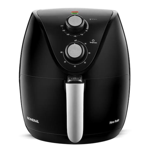 Fritadeira Elétrica Sem Óleo Mondial New Pratic Preta AF-31 3,5L 1500W 220V 6426-02Para aqueles que procuram maior praticidade na rotina, sem perder na qualidade de vida, a Mondial apresenta a Fritadeira Elétrica Sem Óleo New Pratic AF-31.Com a qualidade Mondial e design sofisticado a New Pratic torna o ato de cozinhar muito mais prazeroso. Agora você pode fritar seus alimentos favoritos sem a utilização de óleo, sem sujeira e sem deixar fumaça pela casa toda. Todos seus pratos preferidos prontos em poucos minutos e servindo toda a sua família. A New Pratic é perfeita para a família toda pois conta com capacidade de 3,5L. Ela conta também com seleção de temperatura até 200ºC e timer de até 60 minutos que desliga automaticamente após o termino do preparo. É capaz de assar, cozinhar, gratinar e fritar, trazendo muito mais possiblidades de receitas. Muito mais segurança e facilidade na sua rotina.Com motor de 1500W de potência que trazem muito mais rapidez nos preparos, a AF31 também conta com lâmpadas piloto que indicam o funcionamento e aquecimento do produto. Seu cesto removível possui revestimento antiaderente, sendo segura, prática e facilitando o manuseio e limpeza garantindo mais tempo livre para você aproveitar momentos com a sua família. Especificações Técnicas:- Marca: Mondial- Modelo: AF-31- Voltagem: 220V- Origem: Nacional- Cor: PRETO- Capacidade: 3,5L- Potência: 1500W- Tipo de tomada (amperes): 20A- Temperatura: Até 200ºC- Timer: 60 minutos- Ação do produto: Assar, cozinhar, gratinar e fritar seus alimentos- Tipo de alimentos que comporta: Prepara petiscos, massas, carnes, pastéis, pão de queijo, churros, peixes entre outros- Revestimento antiaderente: Sim- Segurança: Aviso sonoro e desligamento automático- Tipo de fritadeira: Fritadeira Elétrica- Luz indicadora: Sim- Itens inclusos: 01 Fritadeira Elétrica – 01 Livro de receitas - Manual de instruções- Dimensões do Produto (LxAxP): 27,3 x 31,4 x 33,2 cm- Dimensões da Embalagem (LxAxP): 30,5 x 34 x 30,5 cm- Peso bruto: 3,9 kg - Peso líquido: 4,45 kg- Garantia: 12 meses