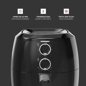 Descubra uma maneira mais saudável e prática de cozinhar com a air fryer 4L. Frite, asse, desidrate ou toste seus alimentos favoritos sem a necessidade de óleo ou . O timer de 60 minutos assegura que suas receitas estejam prontas no tempo certo, enquanto o aviso sonoro indica o término do preparo.