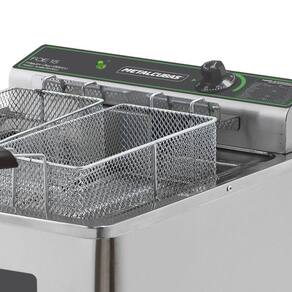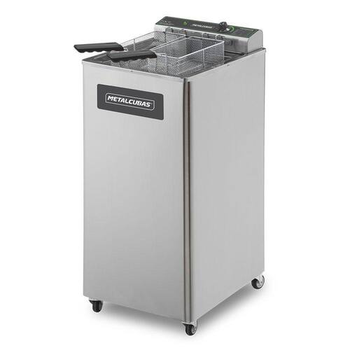 Fritador Elétrico Pedestal fabricado externamente em aço inox escovado 430 e tanque em aço inox 304. Seu painel é removível com resistências blindadas em inox que contam com proteção e bulbo do termostato em aço inox. Essa Fritadeira acompanha termostato para controle de temperatura e segurança, lâmpada piloto que indica o funcionamento da resistência e válvula esfera de escoamento do óleo.