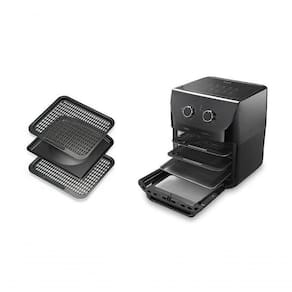 Os acessórios contam com a tecnologia Antiaderente Black Resist, que oferece 3 camadas de proteção para maior durabilidade. A porta de vidro removível facilita a limpeza, podendo ser lavada na lava-louças junto com as grelhas e bandejas.