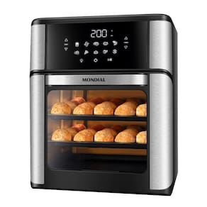 Fritadeira Eletrica Air Fryer Mondial Oven AFO-12L-BI 12L 2000W. Prepara alimentos de forma mais prática, além de fritar sem óleo, assa, cozinha e gratina. Possui 10 funções predefinidas e tecnologia de circulação de ar quente. Cesto e assadeiras com antiaderente Duraflon.Porta-fio