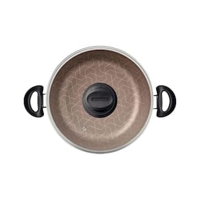 Corpo de alumínio com espessura de 2,3 mm que proporciona cozimento rápido e uniforme. Revestimento interno e externo de antiaderente Starflon Max que não gruda, é fácil de limpar, mais durável e não é prejudicial à saúde, pois é livre de PFOA. Tampa de vidro temperado, com saída de vapor e borda de aço inox. Alças de baquelite antitérmico e pegador de nylon que oferecem segurança durante o manuseio. Pode ir à máquina de lavar louças facilitando seu dia a dia.