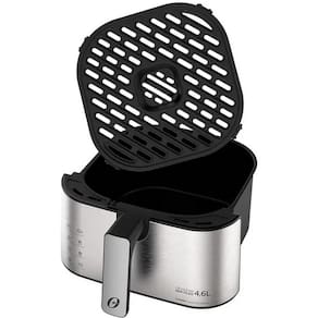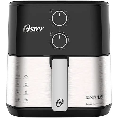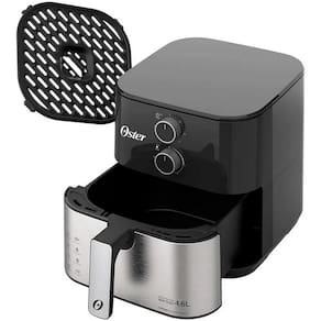 Design compacto, 4,6 litros de capacidade, regulagem de temperatura até 200°C, timer de até 60 minutos, grelha para posicionar alimentos.Porta-fio