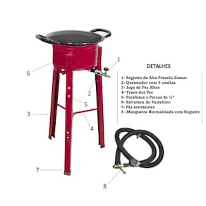 Fogão Pasteleiro Roa Pequeno com Tacho é especial, pois torna seu alimento crocante e perfeito!Imagine o aroma irresistível de pastéis dourados preenchendo sua cozinha. Economize tempo e energia, o fogão te auxilia em fazer seu alimento em menos tempo pois é adequado para frituras em geral.Possui queimador de alta pressão, acompanha Tacho nº12.Utiliza gás de botijão. Serve para frituras em geral industrial.Informações TécnicasMarca: Indústria ROAMaterial: Chapa de Ferro com Pintura Eletrostática na cor VinhoDimensões do Pasteleiro: Altura Total 76cm x Diâmetro da Boca 26cmDimensões do Queimador: Comprimento Total 280m x Diâmetro 90mm com 04 Caulins (bicos espalhadores de chama)Pés de Alta Resistência removíveis com Pintura EletrostáticaRegistro Zamac com Injetor 0,40mmPeso: 3,41kgEmbalagem: 01 Pasteleiro Profissional com Tacho para Fritutas > Tamanho Pequeno.