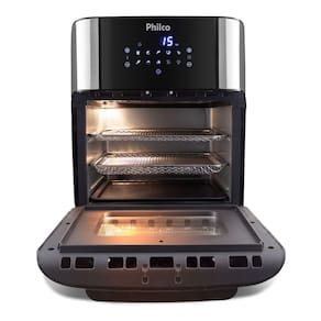Para ter muito mais praticidade e agilidade na cozinha, a Fritadeira Air Fry Oven Philco PRF2200 é perfeita para você! Ela é 2 em 1: Forno e Air Fry, frita e assa sem engordurar a cozinha e é ideal para preparar diversos tipos de alimentos. Ela possui capacidade de 12 litros, permitindo fazer receitas para toda a família. A PRF2100 possui função desidratar que realça o sabor dos alimentos sem perder seu valor nutricional. A função reaquecer garante muito mais praticidade no dia a dia, e a função timer com 90 minutos com desligamento automático. Ela ainda possui controle de temperatura ajustável de 80°C a 200°C. Ela ainda acompanha os acessórios: 2 assadeiras rasas, 1 cesto antiaderente com capacidade para 3,5 litros e 1 bandeja coletora de gordura e migalhas. Tenha a agilidade e as vantagens da tecnologia air fry aliadas à versatilidade do forno com a Air Fry Oven Philco PFR2200!