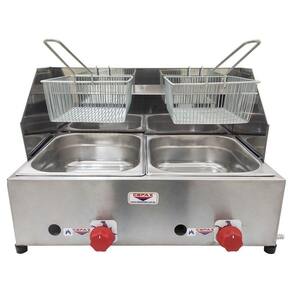 Fabricada em chapa de aço inox 430 de espessura 0,50mm, esse Fritador conta com pés reguláveis, corta vento para um funcionamento e cesto retangular n18 que proporciona maior quantidade ao fritar!