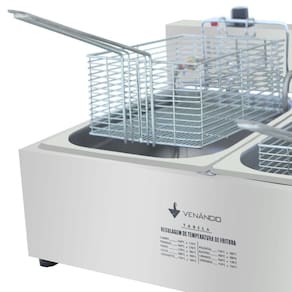 O Fritador Elétrico 2 Cubas conta com selo de conformidade de acordo com a portaria 371/09 do INMETRO. Esse Fritador é disponível no modelo 127V ou 220V, equipado com resistência e termostato para controle de temperatura sendo a Cuba para óleo estampada em aço inox no modelo gastronorme 1/2 e corpo em aço inox 430 acompanhando dois cestos.