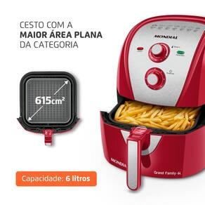 A família de Air Fryers Mondial está sempre crescendo e a AFN-60-RI, com capacidade de 6 litros, é a opção perfeita para receitas robustas, saborosas e que ficam prontas em poucos minutos! A alta potência aliada à Tecnologia de Circulação de Ar Quente proporcionam mais agilidade e eficiência nos preparos. Além disso, por não precisar de óleo ou manteiga, a fritadeira a Ar permite uma rotina alimentar com mais sabor e saúde. O cesto é quadrado e removível para acomodar melhor os alimentos e assar por igual. Saiba mais sobre a AFN-60-RI: