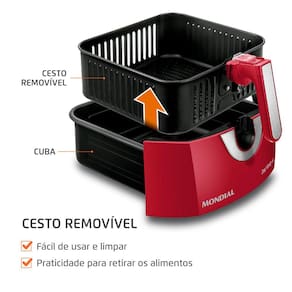 ANTIADERENTE: NÃO GRUDA: O cesto possui o antiaderente Duraflon, tecnologia exclusiva Mondial, e os alimentos não grudam no fundo.
