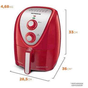 Fritadeira sem oleo air fryer mondial 5 litros familia , antiaderrente, premium, cesto quadrado 220v