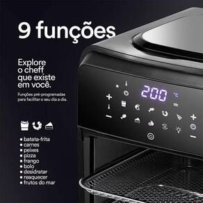Com muita versatilidade a air fryer EOS permite a você programar a temperatura de 80 a 200C e timer de até 90 minutos. Com um painel totalmente digital com a tecnologia digital touch, e 9 funções pré-programadas, a panela EOS vai deixar sua cozinha muito mais moderna. A luz interna ainda permite que você acompanhe o preparo dos alimentos, para garantir que você vai acertar o ponto ideal de sua comida.