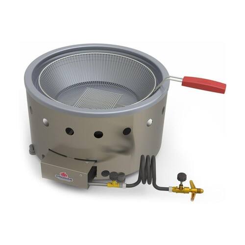 - Material aço inox 430. - Modelo PR 70G - Prepara Salgados e frituras em geral. - Trabalha á gás GLP Alta pressão. - Cuba para óleo estampada em alumínio. - Manipulador controlador gás - Orifício central nos modelos á gás para facilitar a circulação oxigênio - Capacidade mínima óleo - 3 Lts - Capacidade máxima óleo - 5 Lts. - Consumo Médio 0,43 Kg/h. - Acompanha Cesto Removível 360mm x 90mm Alt. - Capacidade Nominal total 7 Lts. - Peso Líquido - 5 Kg - Peso Bruto - 5,3 Kg - Medidas totais : 25cm A x 45cm L x 52cm P - Medidas com a embalagem: 30cm A x 48cm L x 56cm P