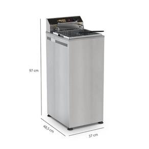 Material: gabinetes e cubas em aço inox, cesto de fritura em aço arame niquelado;