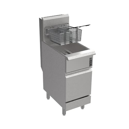 Possui sistema de segurança com interrupção de abastecimento de gás ao atingir a temperatura de 232 graus e a válvula de drenagem na entrada da porta permite o esvaziamento da cuba rapidamente e com segurança, enquanto a zona fria ao fundo do tanque evita influência de resíduos alimentícios.