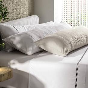 Disponível nas opções de bordado branco, preto ou cinza, combina com o jogo de cama da mesma linha ou pode ser usada como destaque em composições neutras e elegantes.