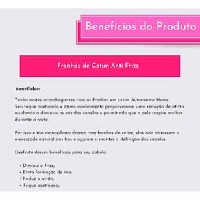 Tenha noites aconchegantes com a fronha em cetim Autoestima Home. Seu toque acetinado e ótimo acabamento proporcionam uma redução de atrito, ajudando a diminuir os nós dos cabelos e permitindo que a pele respire melhor durante a noite.