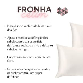 Beneficios da fronha de cetim para o cabelo O cetim, ao contrário do algodão, não absorve a oleosidade natural dos fios e ainda ajuda a manter a definição dos cabelos, pois sua superfície deslizante reduz o atrito e deixa os cabelos no lugar. Ou seja, usando a fronha de cetim seus cabelos amanhecem com menos frizz e finalizados da maneira que estavam antes de dormir. No caso das crespas e cacheadas, os cachos continuam super definidos.