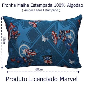 Conteúdo e Medidas: Fronha Malha Estampada Disney Marvel Avengers - Capitão América - 01 Peça Tamanho(48cm x 68cm (Para travesseiro até 50cm x 70cm)