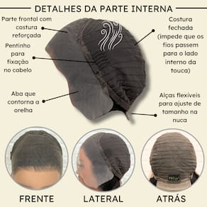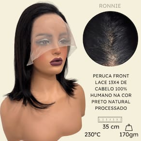 - Cabelo 100% humano tingido processado; - Modelo front Lace HD 13x4; - 35cm de comprimento; - Possui quatro pentes internos para maior fixação; - Peso do produto 170gm em média; - Tamanho da peruca M (padrão) com alças internas ajustáveis. Marca: Não Informado