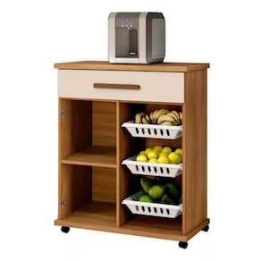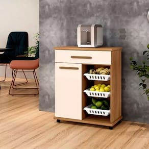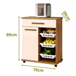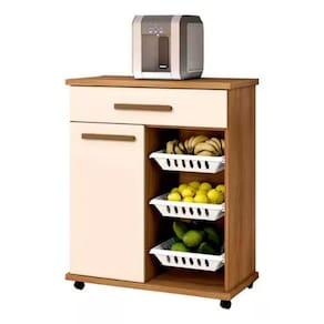 Fruteira 1 Porta 1 Gaveta 3 Cestos Goiânia Arte Móveis Cinamomo / Off Fruteira 1 Porta 1 Gaveta 3 Cestos Goiania Arte Moveis Que tal dar mais vida a sua cozinha com esta belissima e pratica fruteira? Perfeita para agregar mais funcionalidade a este ambiente. Com um design versatil, conta com 03 cestos de plasticos para voce colocar as frutas e legumes sendo possivel retira-los, facilitando na hora da limpeza. Produto desenvolvido para deixar a sua cozinha mais bela e funcional.