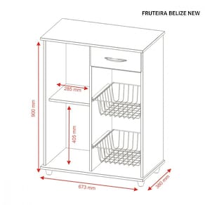 A Fruteira Belize da Notável é um produto desenvolvido para otimizar os espaços na cozinha. Fabricado em MDP o que garante maior durabilidade do produto. Possui também uma porta e uma gaveta além de sois cesto aramados.