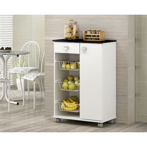 Fruteira Natasha 1 Porta 1 Gaveta – Branco e Preto Deixe sua cozinha mais bonita e completa com o auxílio desta prática Fruteira Natasha, possui uma porta, uma gaveta, deixando seu lar organizado. Fabricada em MDP, acabamento em U.V. Proporcionando durabilidade, qualidade e resistência ao móvel.