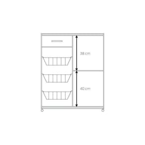 Fruteira 1 Porta Com 3 Cestos 1332 Ilan *Imagens meramente ilustrativas. Balcão com uma gaveta, 3 cestas de frutas e uma porta, divida com uma prateleiras.Conta com rodízios para fácil movimentação. Comporta galão de água ou forno micro-ondas. - 3 Cestas para frutas ou legumes; - 1 Porta dividida em duas partes; - 2 Puxadores cromados; - 1 Gaveta entregue já montada. - Corrediça telescópica Dimensões do produto montado: altura 87 cm largura 74 cm profundidade 35 cm. Produto entregue desmontado. Manual de montagem disponível no site do fabricante. Atenção: Não nos responsabilizamos, no ato da entrega, por desmontagens, subir escadas/elevadores ou transporte por guincho para apartamentos. Eventuais despesas são de responsabilidade do cliente. Confira as dimensões deste produto e certifique-se de que o mesmo passará normalmente por supostos elevadores, portas, escadas e/ou corredores de sua moradia.