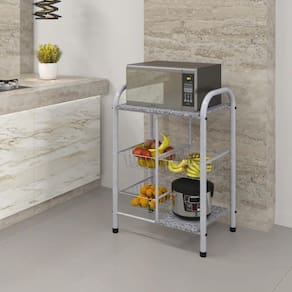 A fruteira Lavinea chegou para completar sua cozinha, fruteira e Base Para Micro-ondas foi feita para você que procura utilidade e beleza com ótimo espaço e acabamento em um único produto. Conta com pintura eletrostática a pó martelado, contém sapatas plásticas nos pés para evitar arranhões no piso e seu tampo é em pedra de granito. Prática irá manter sua cozinha organizada e suas frutas e legumes bem guardados, ela vai proporcionar para o seu ambiente, um visual moderno e sofisticado, deixando o local muito mais agradável e convidativo, além de economizar seu tempo na organização. Aproveite!! Acabamento: Pintura Acabamento da Gaveta: Acabamento da Porta: Acabamento da Prateleira: Verniz Acabamento dos Pés: Ambiente Principal: Cozinha Cesto para Frutas: 03 Cesto Removível: Sim Complexidade da Montagem: Baixa: pode ser montado por uma pessoa sozinha Cor: Martelado Pérola/Granito Ocre Cor do Produto: Martelado Pérola/Granito Ocre Cor Flex: Cor Interna: Escala de Brilho: Semi-Brilho Escala de Brilho da Gaveta: Escala de Brilho da Porta: Escala de Brilho da Prateleira: Semi-Brilho Gaveta com Chave: Informações Complementares: Itens Inclusos: 1 Fruteira, Kit de Ferragens e Manual de Montagem Linha ou Coleção: Manual de Especificação Técnica: Manual de Montagem e Instalação: https://cdn2.madeiramadeira.com.br/atributo/soma-moveis-ltda/1134085-manual-de-montagem-fruteira-lavinea-rev-0-0.pdf Material da Gaveta: Material da Porta: Material da Prateleira: Granito Material do Cesto: Aço Material do Puxador da Gaveta: Material do Puxador da Porta: Material dos Pés: Aço Montagem Flex: Necessita Montagem: Sim Origem do Produto: Nacional Pés Reguláveis: Não Peso: 22.4 Peso Máximo por Gaveta: Peso Máximo por Prateleira: 8 Possui Pés: 04 Possui Portas: Não Recomendações de Uso, Manutenção e Limpeza: Limpar com flanela ou pano levemente umedecido e pano seco. Não utilizar produtos abrasivos. Não expor o produto diretamente à luz solar e à umidade. Rodízio com Trava: Sapatas Niveladoras: Não Sistema de Montagem: Parafusos, Tampa Parafusos e Sapatas Plásticas Suporta Até (kg): 30 Tipo de Corrediça da Gaveta: Tipo de Dobradiça/Corrediça da Porta: Tipo de Madeira Maciça: Tipo de Madeira Maciça da Gaveta: Tipo de Madeira Maciça da Porta: Tipo de Madeira Maciça da Prateleira: Tipo de Madeira Maciça do Puxador da Gaveta: Tipo de Madeira Maciça do Puxador da Porta: Tipo de Madeira Maciça dos Pés: Tipo de Porta: Tipo de Puxador da Gaveta: Tipo de Puxador da Porta: