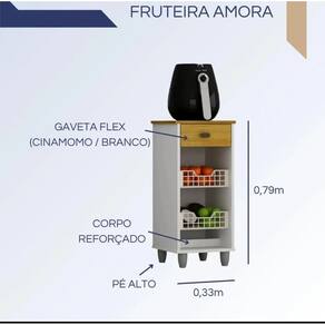 Transforme sua cozinha com o Armário Fruteira Amora Compacta Gavetas Flex e desfrute de um ambiente mais organizado e estiloso. Ideal para quem valoriza a praticidade e a estética em cada detalhe do lar.