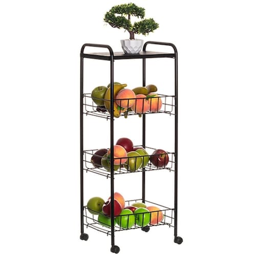 A fruteira aramada com cestos e tampo de madeira vai fazer a diferença na sua cozinha organize suas frutas e legumes com praticidade, além de conseguir otimizar os espaços da sua cozinha. Sua casa pede uma fruteira versátil, com design moderno para compor a decoração da cozinha. Com três cestos em aramado, a fruteira é ideal para os lares que adoram consumir esse tipo de alimento, além de possuir rodinhas que facilitam o transporte das frutas pelos ambientes. O tampo de madeira pode ser utilizado como suporte para a decoração.