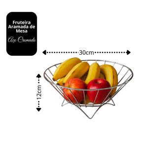 Fabricada em aço cromado de alta resistência, a fruteira oferece durabilidade, brilho e fácil limpeza, além de combinar com diversos estilos de decoração, do clássico ao moderno.