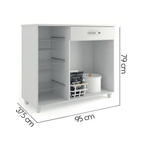 A Fruteira Amanda apresenta 2 Portas e 1 Gaveta que comportam perfeitamente os seus utensílios de cozinha, de forma organizada e prática. Ademais, ela apresenta 3 cestos aramados, perfeitos para você que está precisando de espaço para guardar frutas, verduras e legumes.