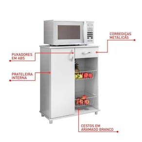 Ela possui cestos aramados que s?o mais resistentes e ir?o manter as frutas e legumes sempre organizados. Na prateleira interna voc? pode guardar seus eletrodom?sticos para uma rotina mais pr?tica.