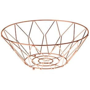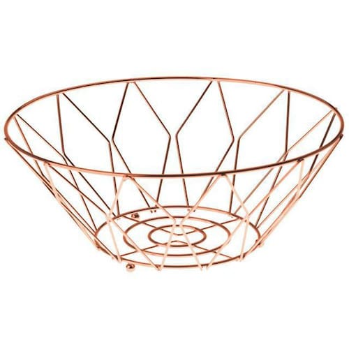 Fruteira cesta de mesa aramado redonda metalizado rose gold - 01 fruteira de mesa aramada metalizada rose gold para frutas