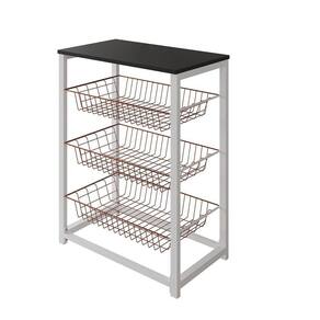 Fruteira Com Suporte Para Micro-Ondas Barcelona Aço Branco Cesto Cobre Tampo Preto A Fruteira Suporte de Micro-ondas Barcelona possui 3 cestos estilo gaveta, para o armazenamento de frutas e legumes e ainda possui tampo de MDF na parte superior, livre para colocar objetos de decoração, utensílios e ela é ideal para colocar seu micro-ondas. A Fruteira fica linda em qualquer tipo de cozinha. Facilitando na organização e na praticidade do dia a dia.Tipo: Fruteira Suporte para Micro-ondasModelo: BarcelonaCor Base: BrancoCor Tampo: PretoCor Cesto: CobreQuantidade de Volumes: 3A Fruteira vai desmontada e acompanha manual para montagem.Medidas:Altura: 83,5cmLargura: 63cmComprimento: 35cmATENÇÃOIMAGENS MERAMENTE ILUSTRATIVAS REALIZADO EDIÇÃO, PODENDO HAVER UMA PEQUENA VARIAÇÃO DE COR DEPENDENDO DE CADA TELA OU MONITOR.Fruteira com Suporte para Micro-ondas Barcelona AÃo Branco Cesto Cobre Tampo Preto