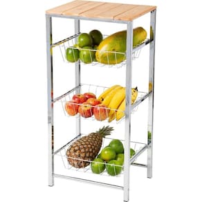Para deixar suas frutas e legumes organizadas de maneira prática e simples, fabricada em aço carbono de alta resistência com acabamento cromado, a fruteira possui ponteiras antiderrapantes que não deslizam e não riscam o piso da sua casa.