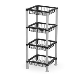 Fruteira de chão cesto empilhável 3 andar retangular preto