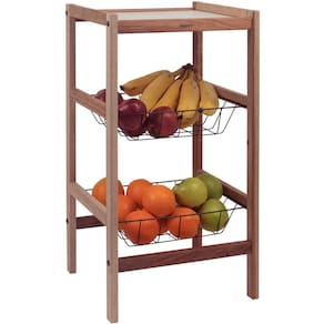 Fruteira de Chão com 2 Cestos Aramados Tramontina Utilínea em Madeira Mista Legumeira Vertical.
