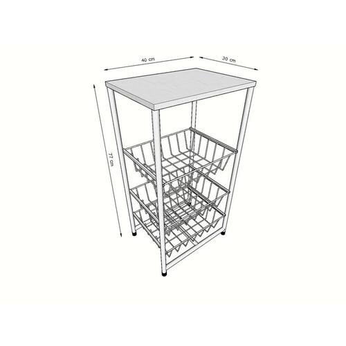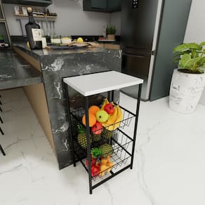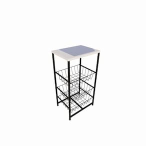 Fruteira de chão cozinha aço mdf 3 cestos multiuso Cor: branco Produto vai desmontado, necessita realizar a montagem O produto já é enviado com o kit para instalação. Fruteira multiuso com cestos deslizantes produzida em aço, podendo ser utilizada em vários ambientes na cozinha, banheiro, quarto, facilitando seu dia-a-dia. Seu tampo superfície superior em mdf permite sua utilização para diversas outras possibilidades, como a utilização de arranjos ou até mesmo utensílios domésticos, como bebedouro, suportando até 30 kg, o que lhe propicia um excelente custo-benefício. Dimensões: Altura - 77cm Largura - 40cm Profundidade - 30cm Benefícios: Cestos deslizante, de fácil encaixe. Produto resistente. Pintura eletrostática epóxi, maior durabilidade não enferruja Conteúdo da embalagem: 1- fruteira preta com mdf de 3 cesto de fábrica. 3 meses contra defeito de fabricação. Marca: Belo Lar