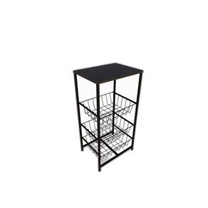 Fruteira de chão cozinha aço mdf 3 cestos multiuso Cor: preto