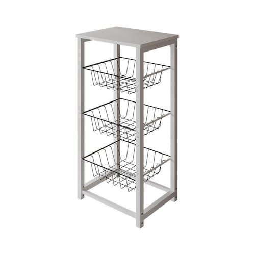 Fruteira De Chão Cozinha Desmontada Aço Branco Cesto Preto Tampo Branco Madri Cor: Branco