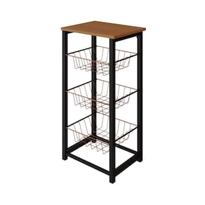 Fruteira De Chão Cozinha Desmontada Aço Preto Cesto Cobre Tampo Canela Madri