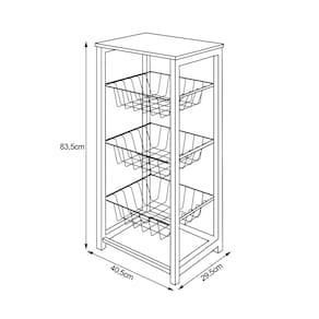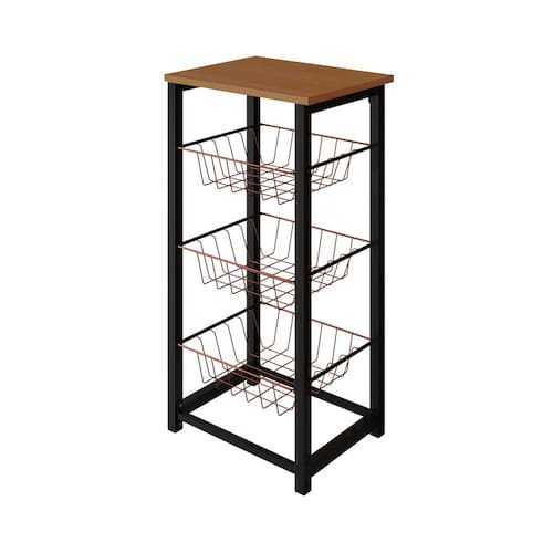 Fruteira de Chão Cozinha Desmontada Aço Preto Cesto Cobre Tampo Canela Madri