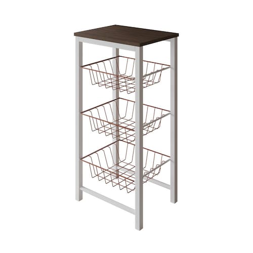 Fruteira De Chão Cozinha Montada Aço Branco Cesto Cobre Tampo Amêndoa Roma