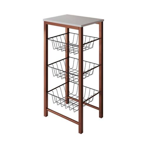 Fruteira De Chão Cozinha Montada Aço Cobre Cesto Preto Tampo Branco RomaOrganize suas frutas preferidas na fruteira Roma. Ela é ideal para fazer parte da sua cozinha, contando com um design atraente que é capaz de transformar seu lar. A Fruteira que se encaixará perfeitamente na sua cozinha. Fruteira Nevada, além de ser uma peça compacta e moderna que organiza sua cozinha, é perfeita para você que busca organização sem perder seu estilo e sua essência.Informação do ProdutoTipo: FruteiraModelo: RomaCor Base: CobreTampo: BrancoCor cesto: PretoQuantidade de Cestos: 3CaracterísticasAltura: 83,5cmLargura: 40,5cmProfundidade: 29,5cmATENÇAOImagem meramente ilustrativa, foram realizadas manipulação para demonstração do produto, podendo haver diferença de tonalidades dependendo do seu monitor ou luminosidade.Fruteira de ChÃo Cozinha Montada AÃo Cobre Cesto Preto Tampo Branco Roma