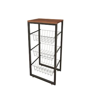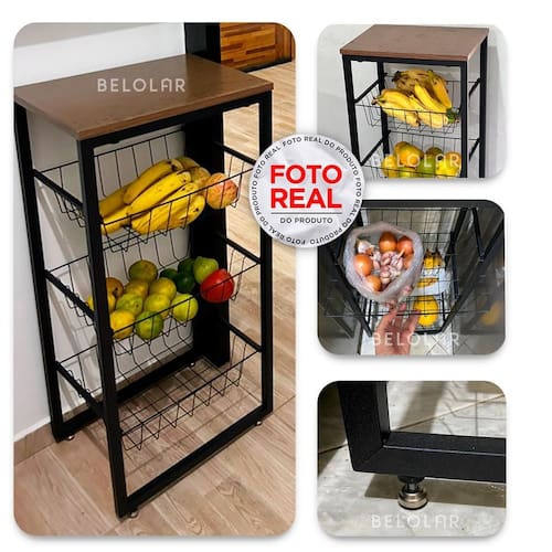 Conteúdo da embalagem: 1- fruteira preta com mdf amadeirado de 3 cesto